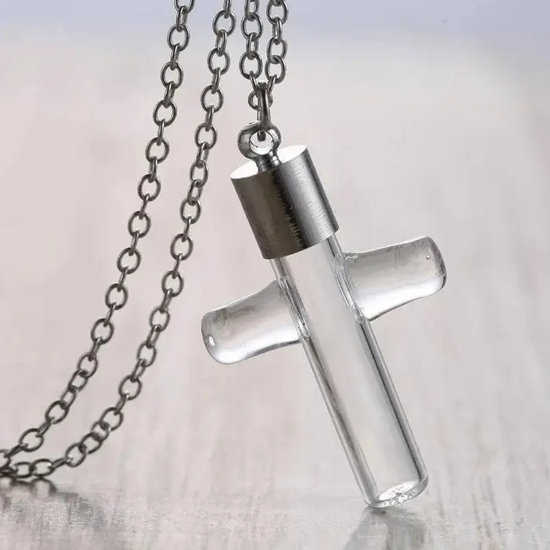 Mini Cremation Cross Glass Cremation Jewelry for Ashes Necklace Stainless Steel Keepsake Pendants Memorial Jewelry for Ashes