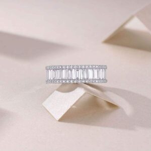 Moissanite Eternity Wedding Ring S925 Silver 18K White Gold Plated