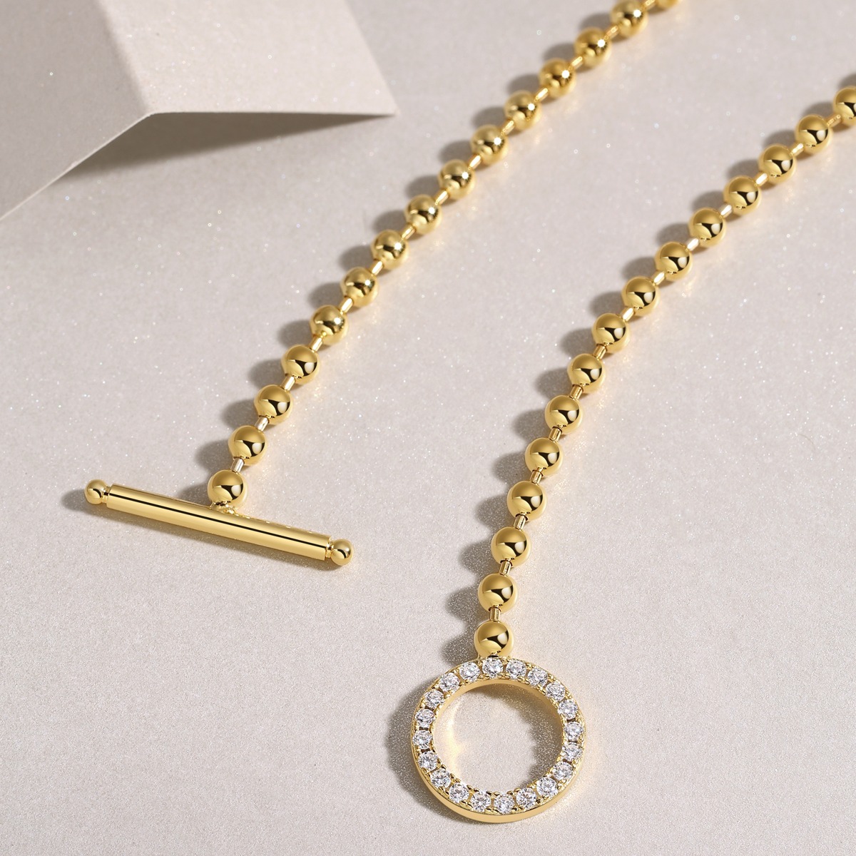 Moissanite Gold-Plated Circle Pendant Necklace – S925 Sterling Silver