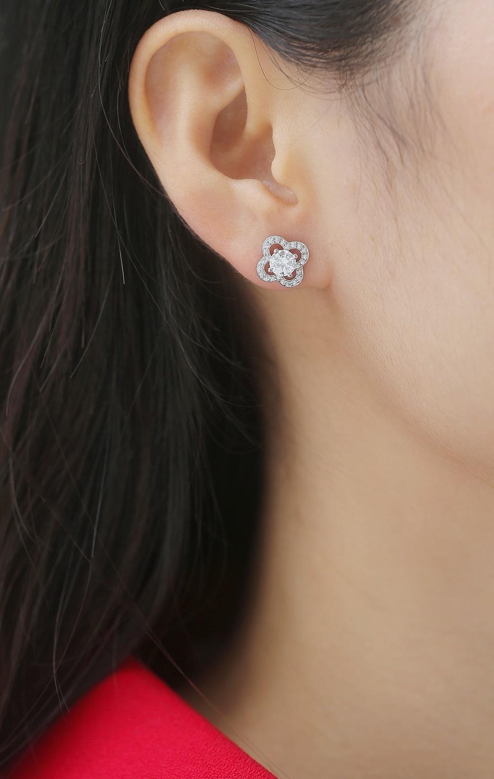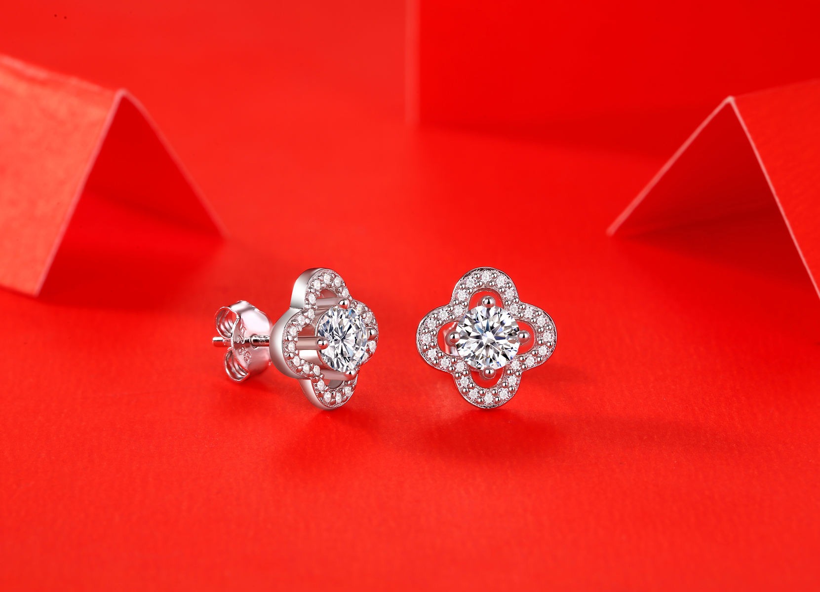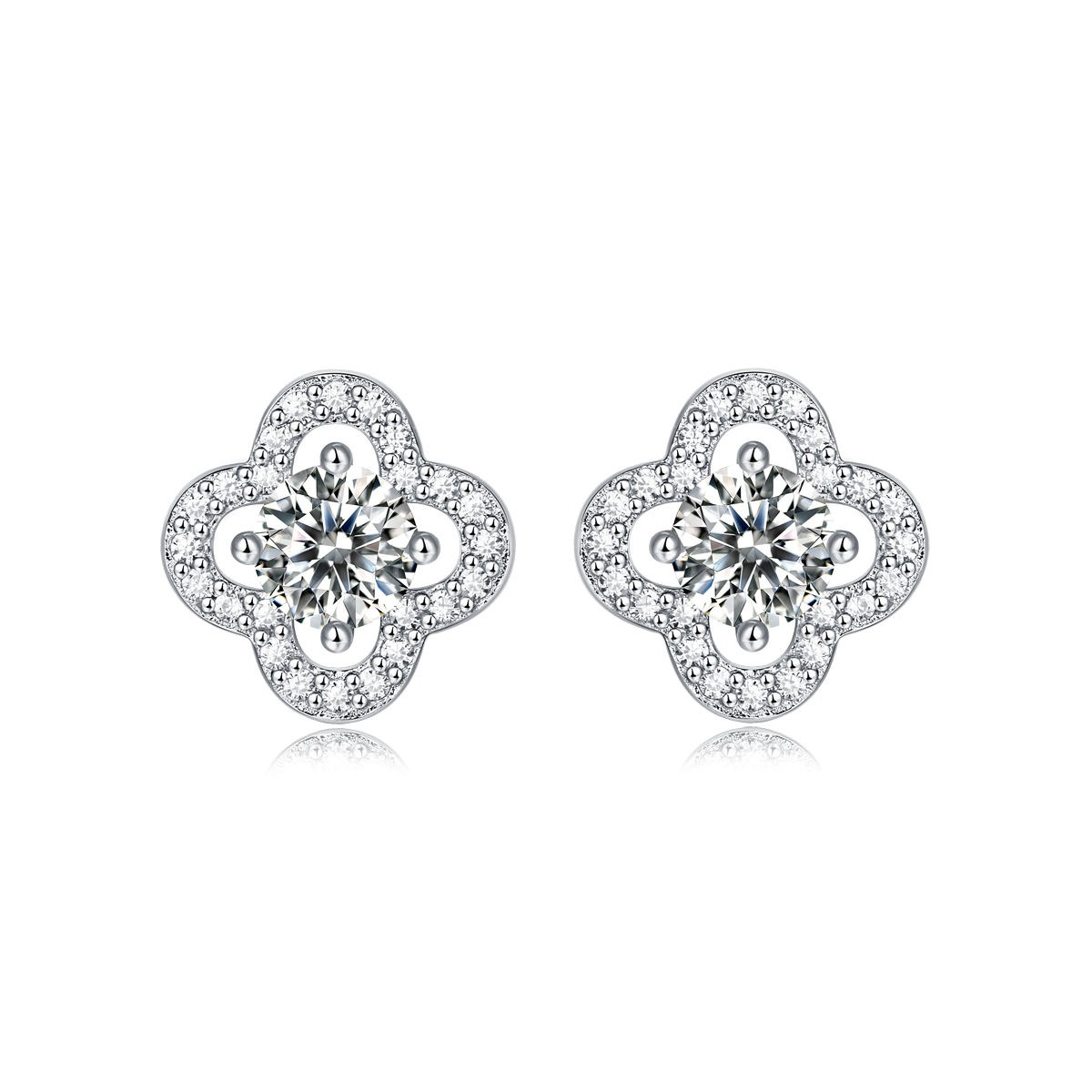 S925 sterling silver single row diamond four prongs three zircon flower shape ring European and American style stud earrings fashion necklace jewelry set