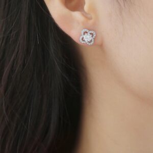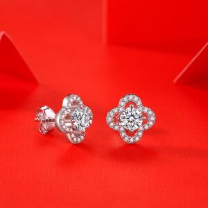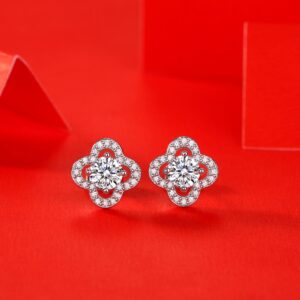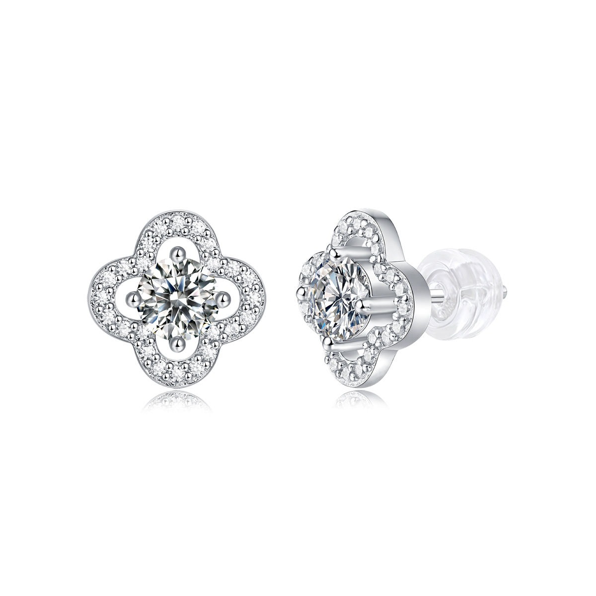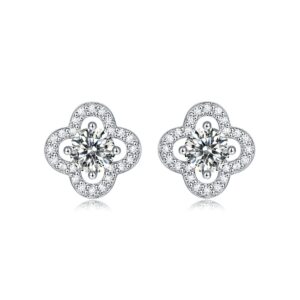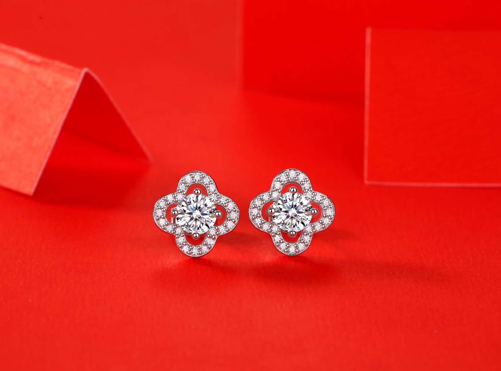 S925 sterling silver single row diamond four prongs three zircon flower shape ring European and American style stud earrings fashion necklace jewelry set