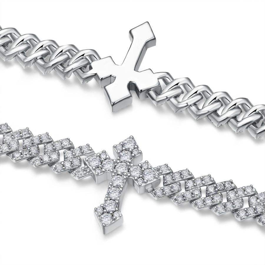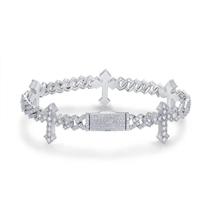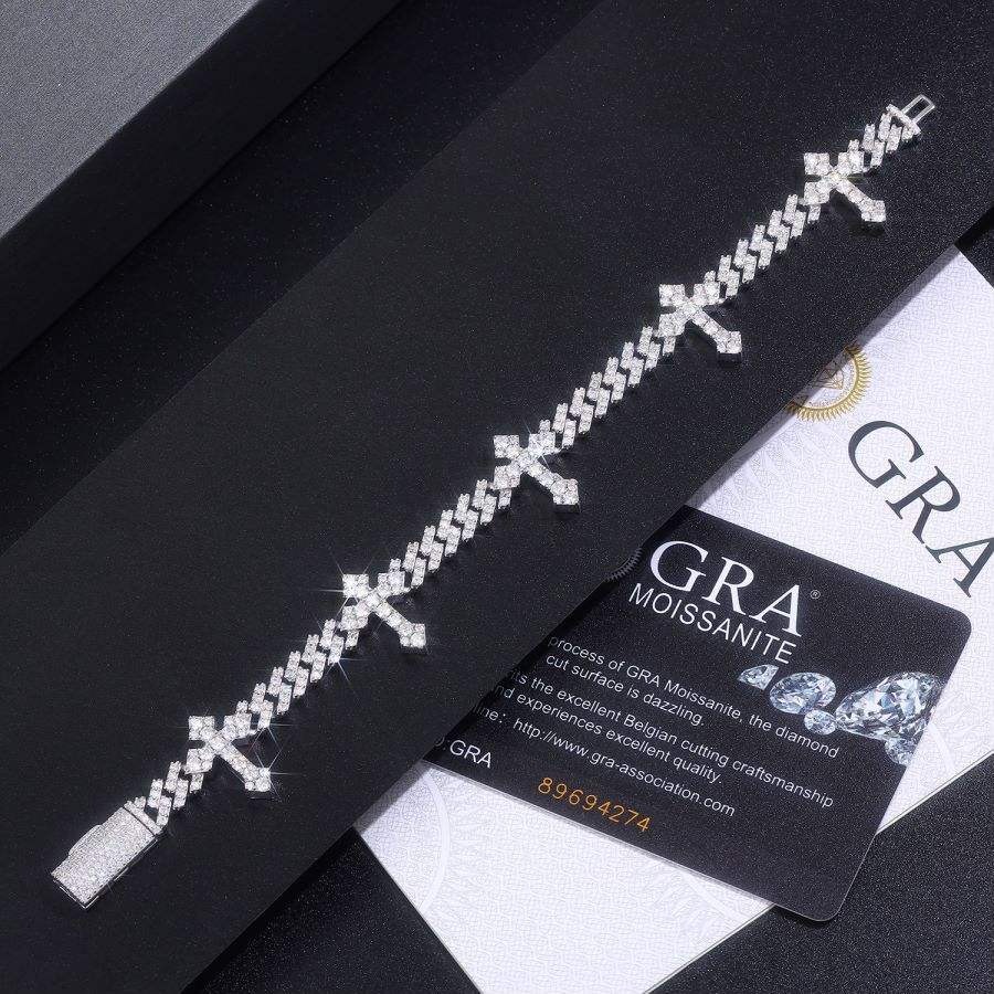 Moissanite Tennis Bracelet with Cross Arrow Design – Lab-Created Moissanite, 925 Silver with 18K Gold Plating, Unisex