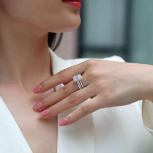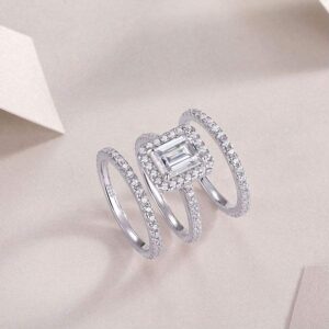 S925 sterling silver jewelry set four-piece square diamond ring earrings necklace fashion bracelet