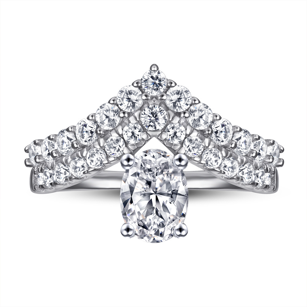 New 925 sterling silver ring micro set AAA zircon V-shaped double row 1 carat diamond ring women’s niche high-end
