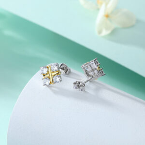 New 925 sterling silver X-type zircon stud earrings niche earrings European and American square diamond earrings high quality wholesale