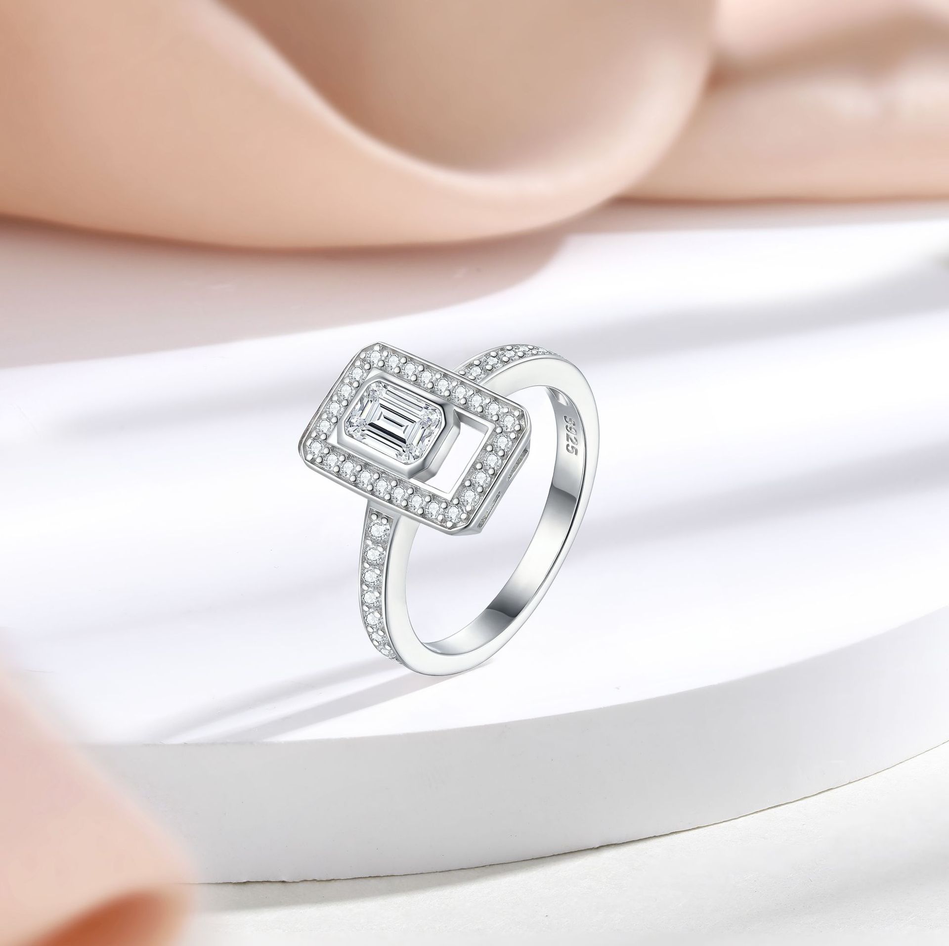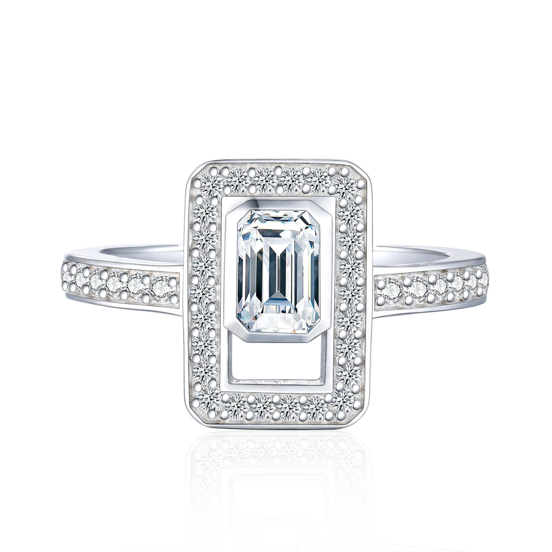 New European and American personality square diamond ring women’s niche sense of luxury S925 sterling silver row ring square zircon women’s ring