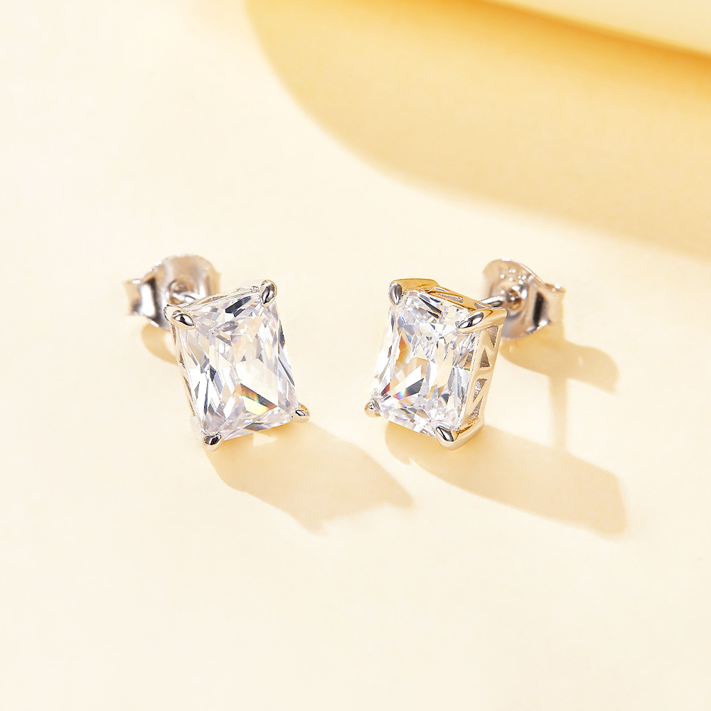 New Jewelry Set Zircon Crystal Necklace 925 Sterling Silver Baguette Stud Earrings High Carbon Diamond Square Diamond Ring