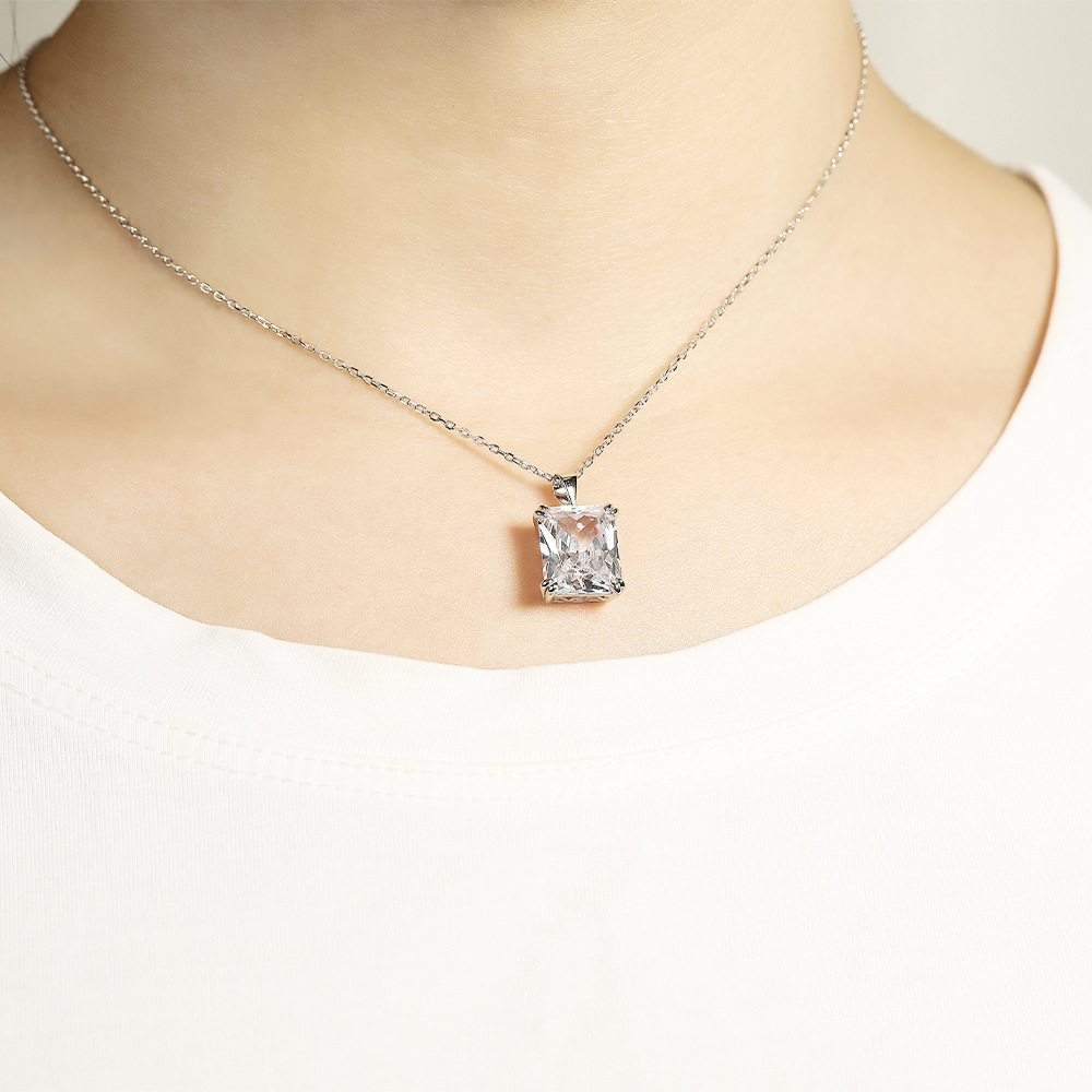 S925 sterling silver jewelry set European and American zircon square diamond ring necklace ins square stud earrings