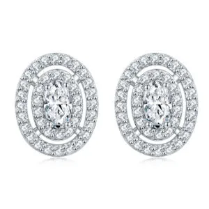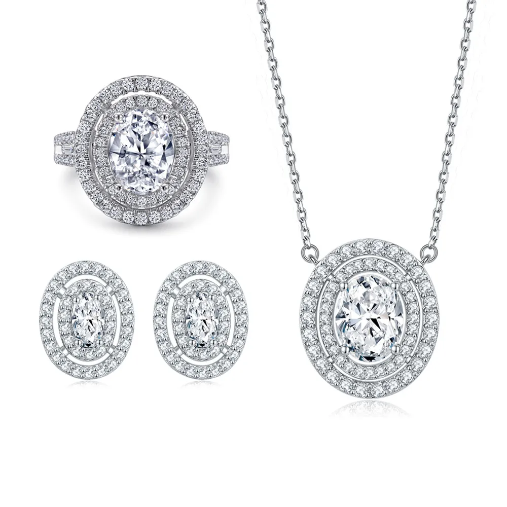 New Marquise Zircon Row Diamond 925 Silver Ring Oval Pendant Necklace Stud Earrings Jewelry Set