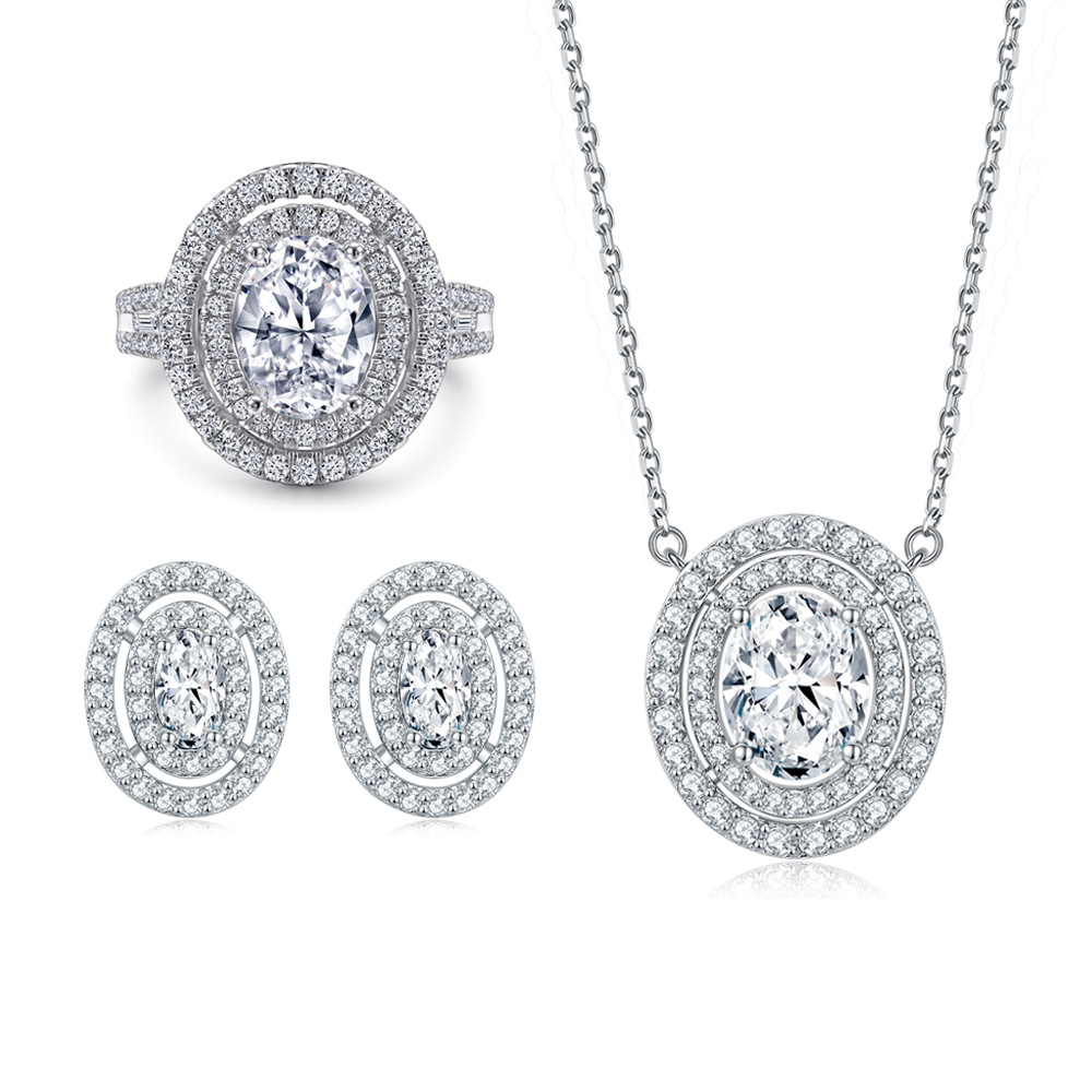 three-piece Jewelry set s925 sterling silver zircon earrings necklace women’s versatile combination ring set ring set