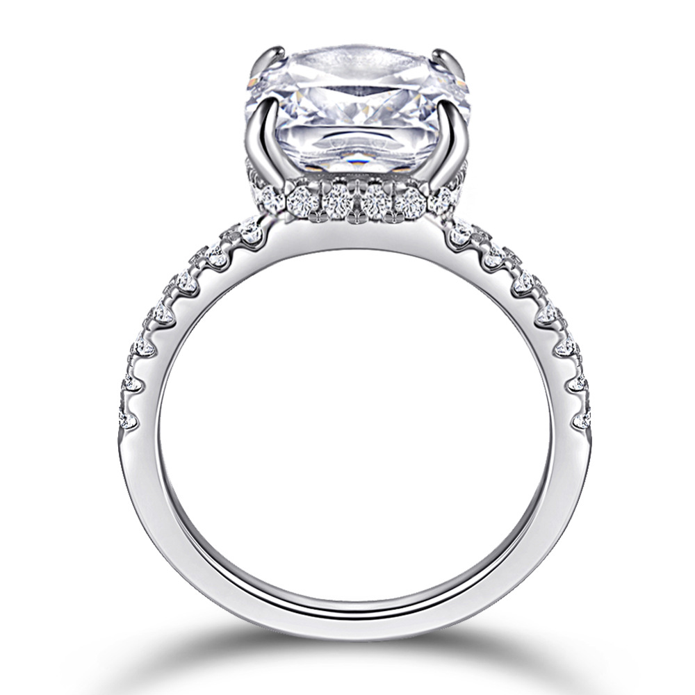 New Rectangular Zircon European and American Exaggerated Princess Flower Cut High Carbon Diamond Square Diamond 925 Silver Ring Row Diamond