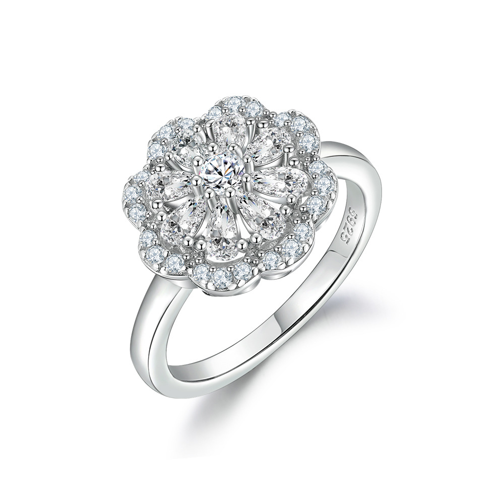 New S925 sterling silver zircon flower ring women’s high-end sense European and American personality women’s rings