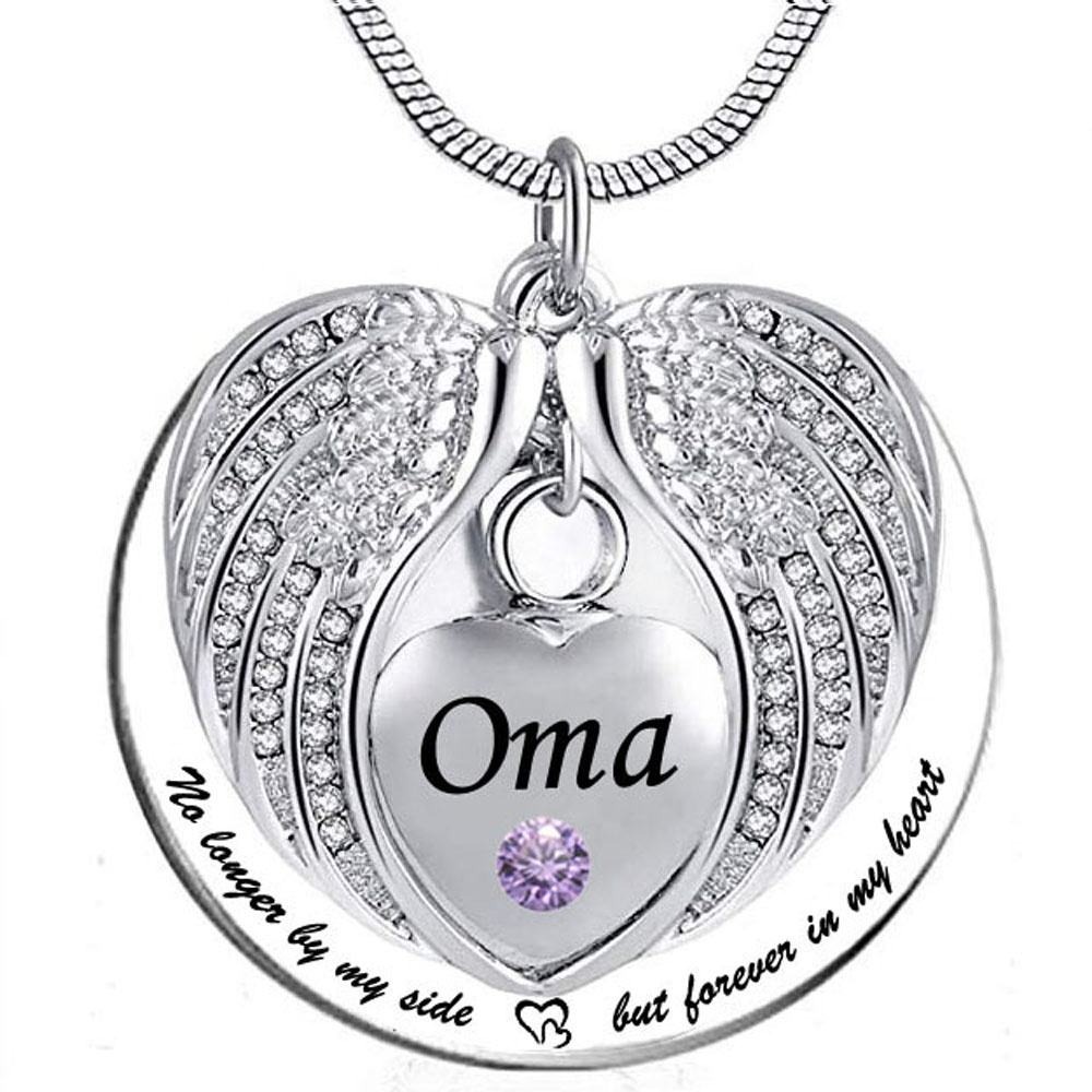 Oma Angel Wing Urn Necklace for Ashes, Heart Cremation Memorial Keepsake Pendant Necklace Jewelry with Fill Kit and Gift