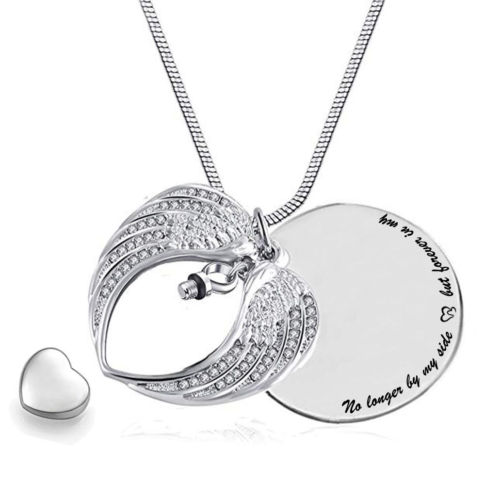 Oma Angel Wing Urn Necklace for Ashes, Heart Cremation Memorial Keepsake Pendant Necklace Jewelry with Fill Kit and Gift quantity