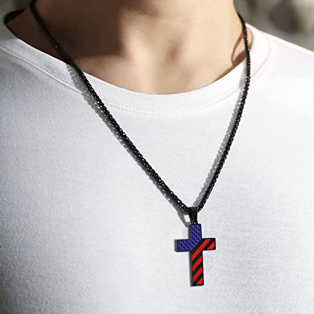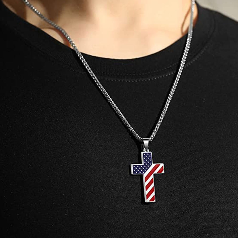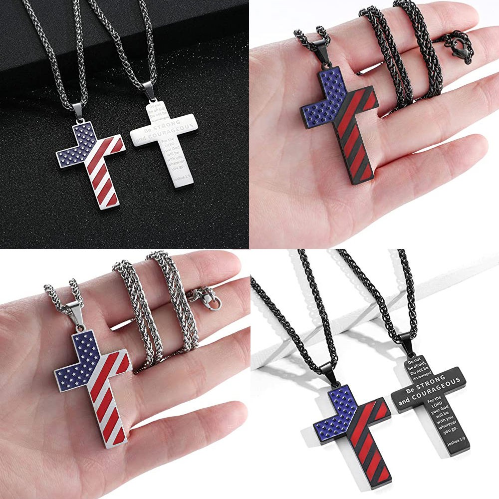 Personalized American Flag Patriotic Cross Necklace Christian Religious Bible Verse Pendant Jewelry for Men Women Memorial Gift quantity