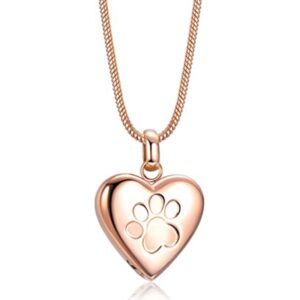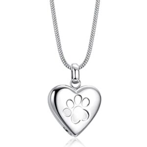 Pet Cremation Jewelry Pendant Paw Print Pet Heart Urns Necklace Memorial Keepsake for Dog’s/Cat’s Ashes with Filling Kit