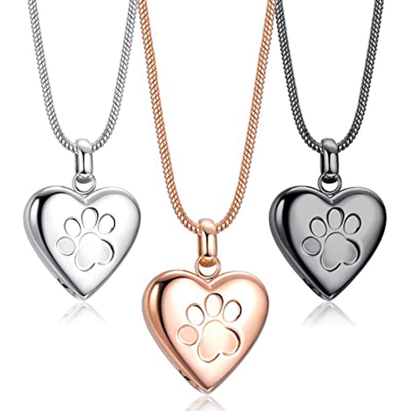 Pet Cremation Jewelry Pendant Paw Print Pet Heart Urns Necklace Memorial Keepsake for Dog's/Cat's Ashes with Filling Kit quantity