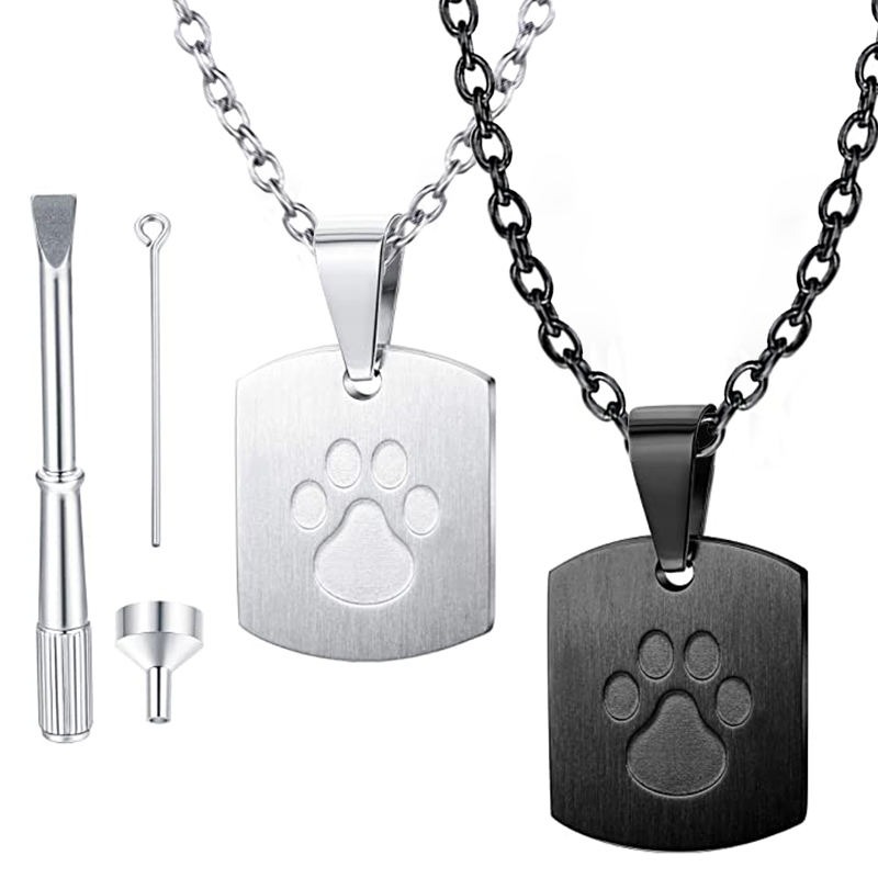 Pet Urn Necklaces for Ashes Paw Print Memorial Ash Pendant Necklace Cremation Keepsake Jewelry for Dog's Ashes with Filling Kit quantity