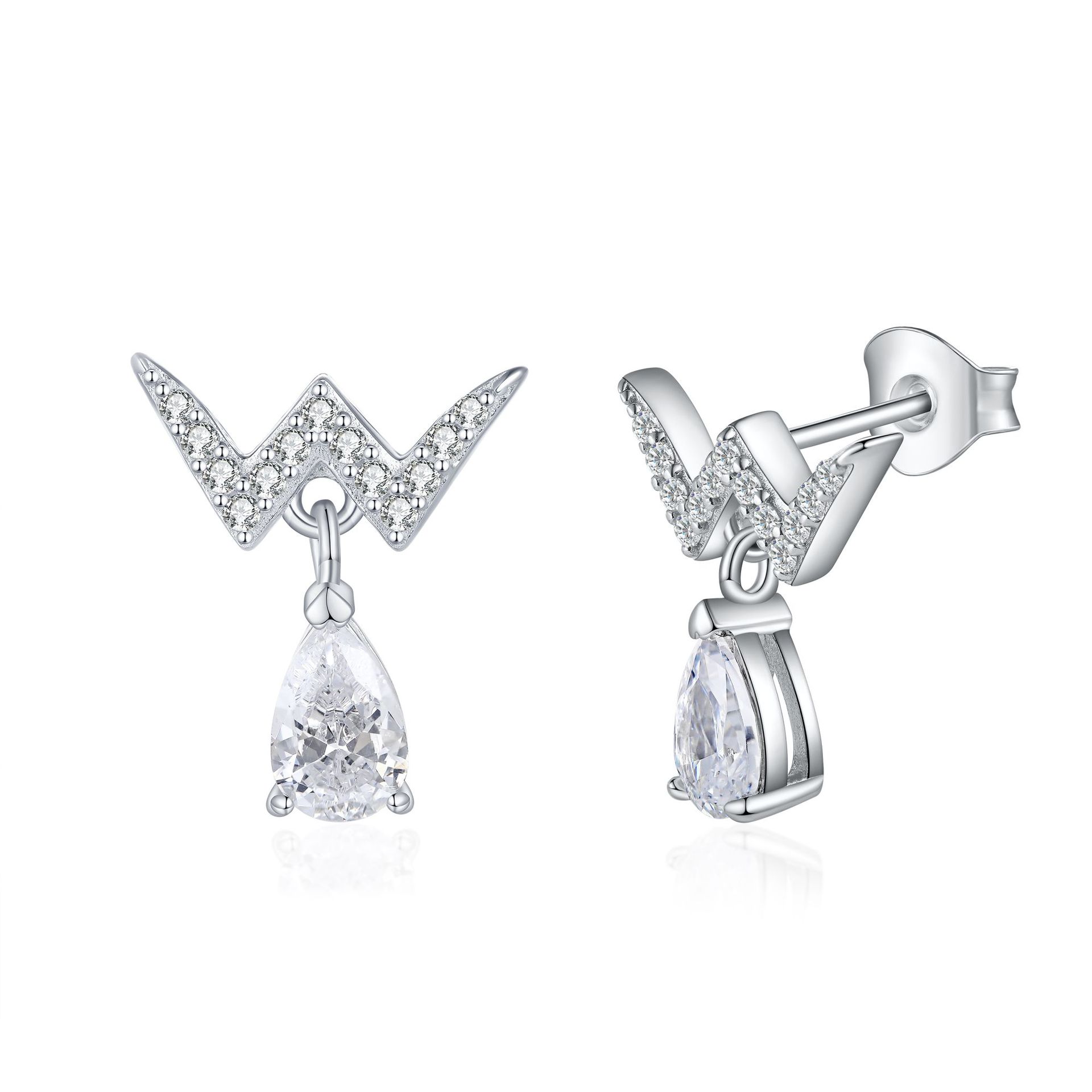 Popular 925 sterling silver W letter stud earrings zircon water drop tassel earrings