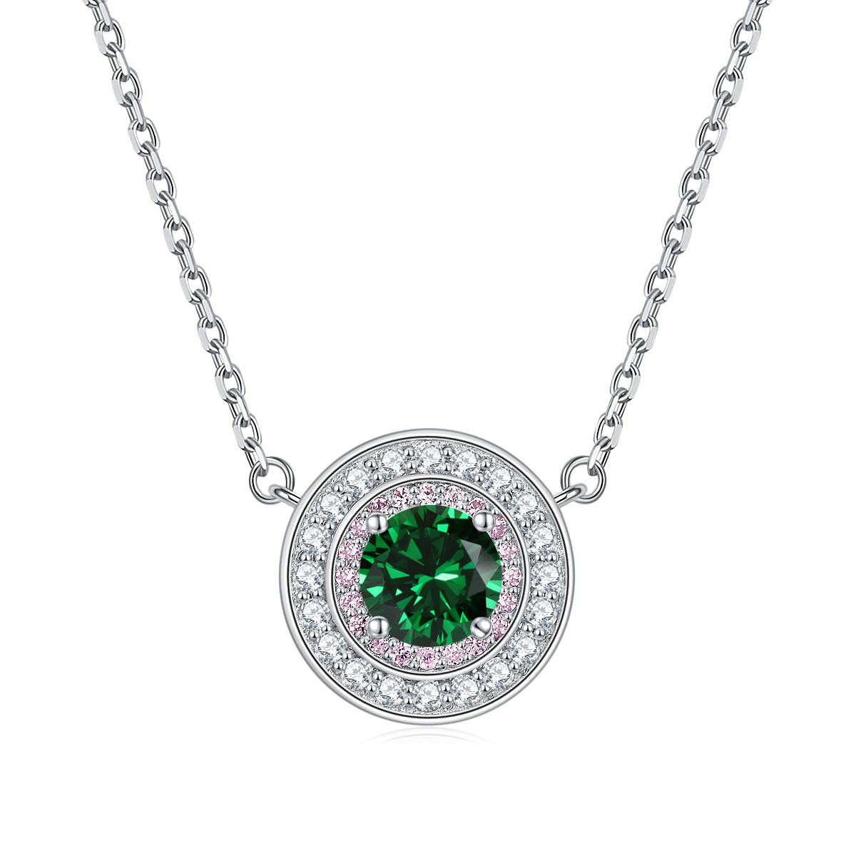 Popular horoscope birthstone zircon round European and American 925 sterling silver necklace peridot clavicle chain ins wholesale