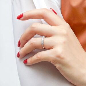 S925 Sterling Silver Ring Women’s 925 Pure Silver Finger Ring Simple Classic Four-Prong Imitation Diamond Ring Silver Jewelry