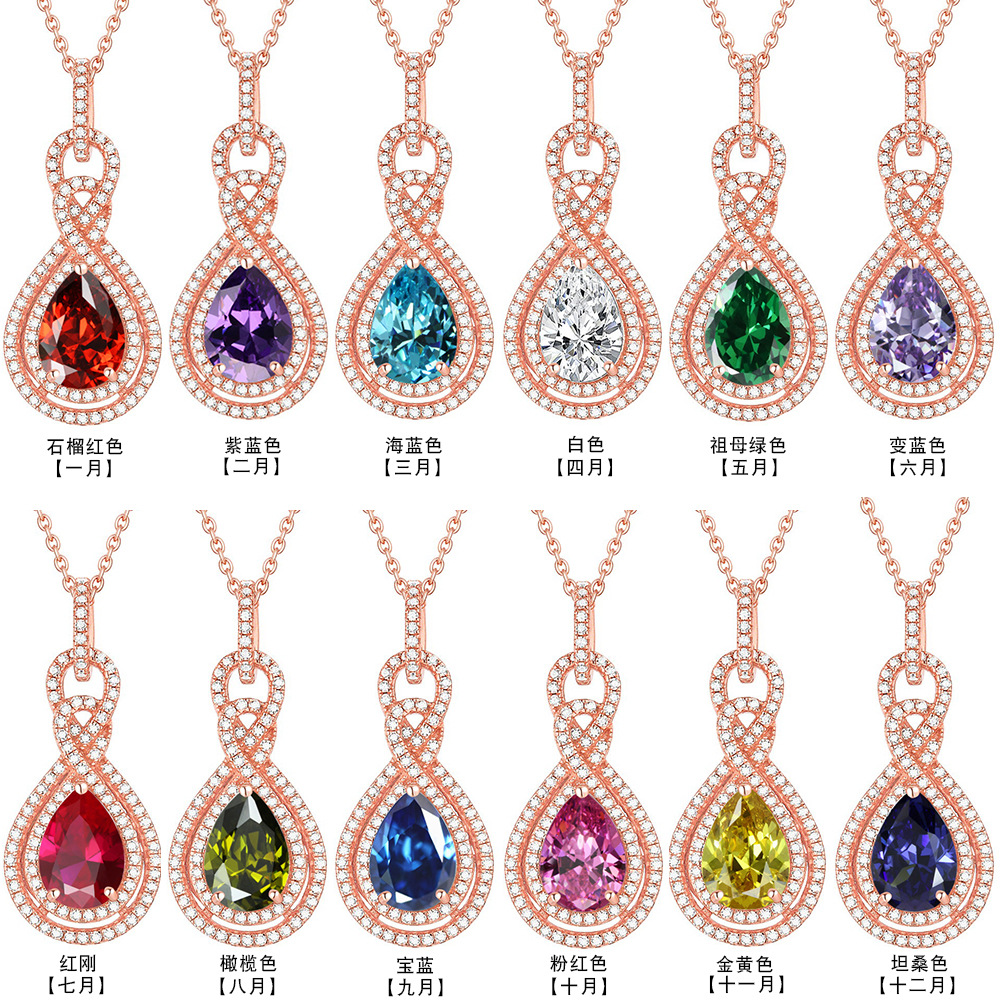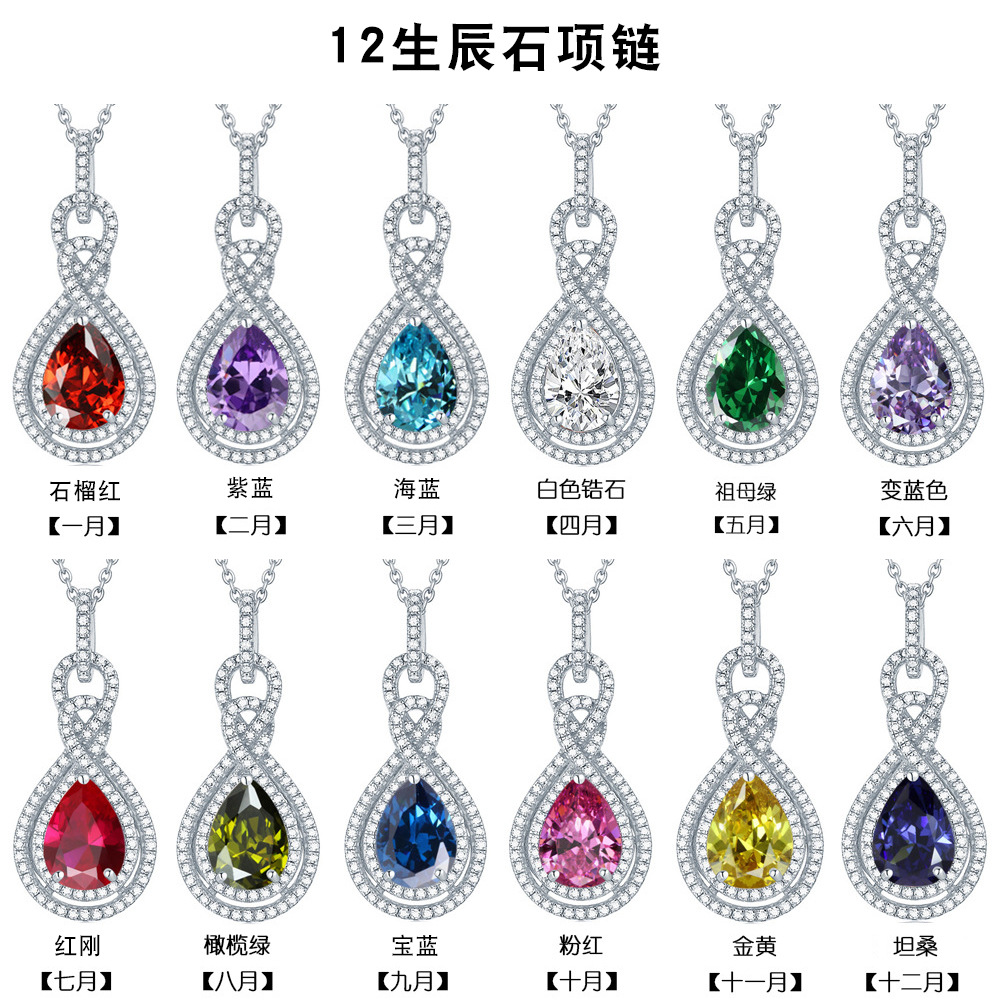Popular S925 sterling silver colored gemstone zodiac zodiac color zircon necklace women’s European and American pendant