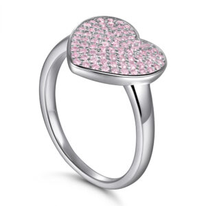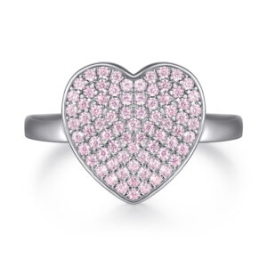 Popular S925 sterling silver heart zircon women’s ring sterling silver pink diamond love ring silver jewelry factory