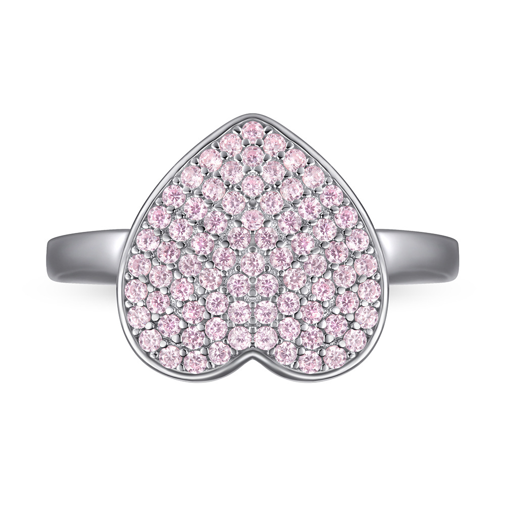 Popular S925 sterling silver heart zircon women’s ring sterling silver pink diamond love ring silver jewelry factory