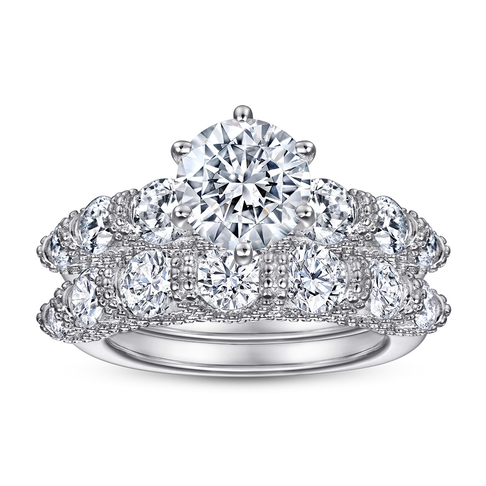 Popular S925 sterling silver set ring engagement double wear European and American ring set female niche rings