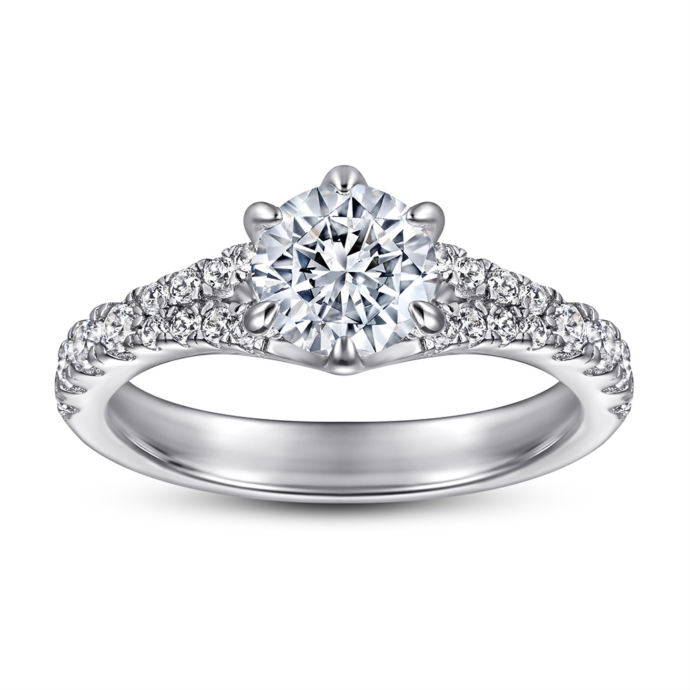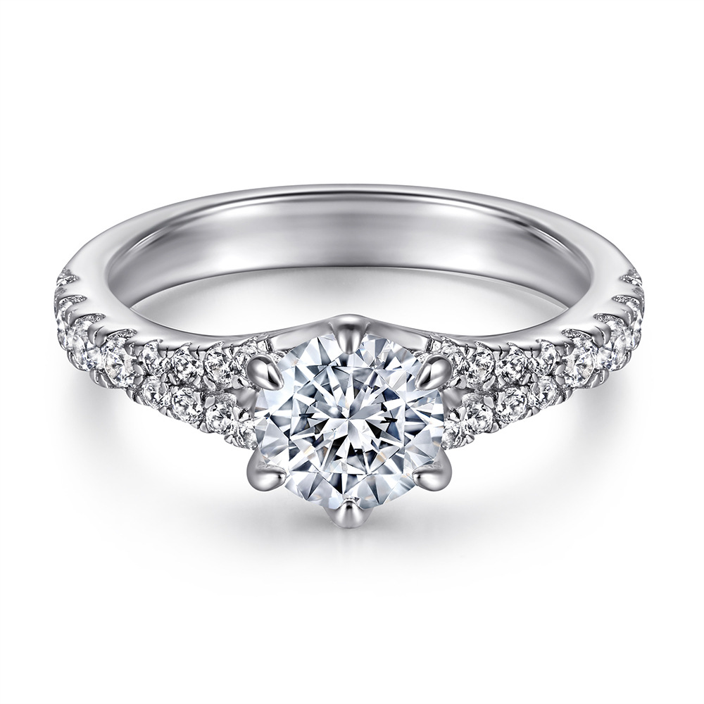 Europe and America S925 sterling silver and diamond zircon ring women’s six-prong diamond ring wedding ring