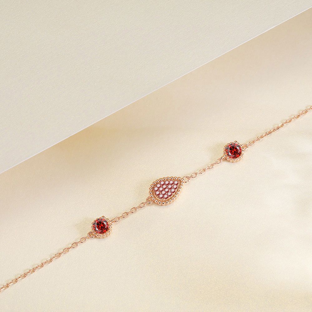 Rose Gold Garnet Bracelet Personality Water Drops S925 Silver Hand Ornament Niche Bracelet