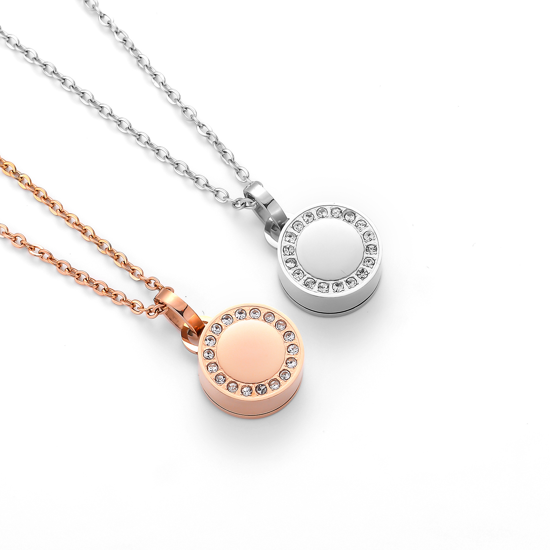 Round Stone Memorial Cremation Ashes Urn Necklace Chain Pendant Keepsake Jewelry