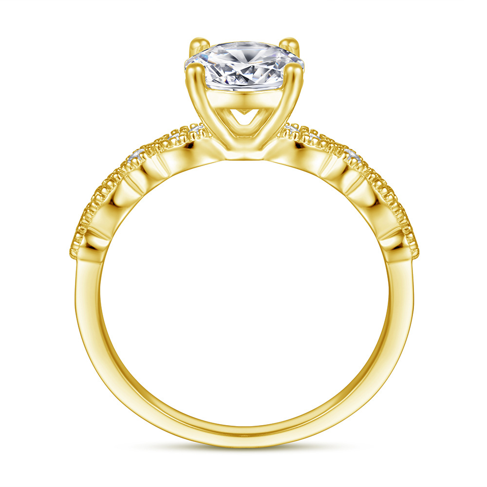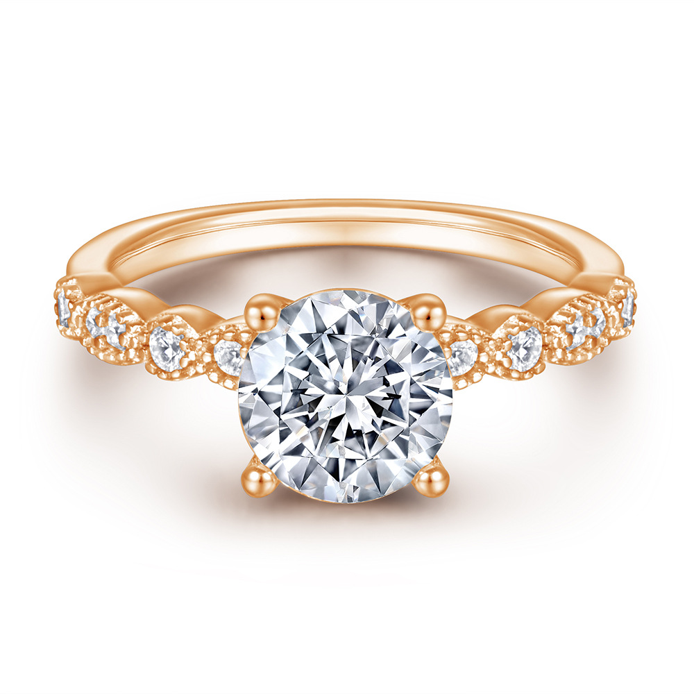 Round Zircon ring four claw s925 sterling silver rose gold ring
