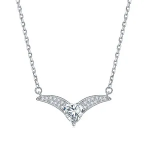 Row of diamond zircon love ring set heart shape 925 silver stud leaf necklace jewelry set