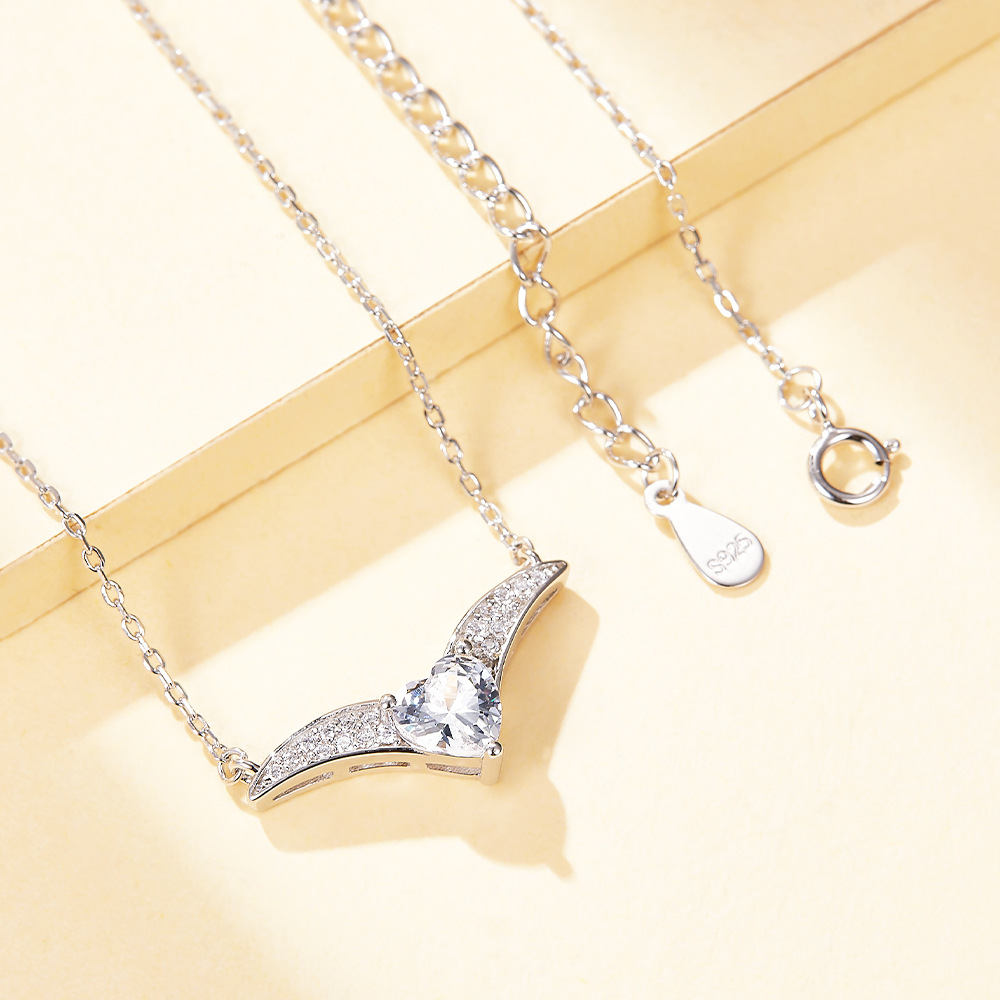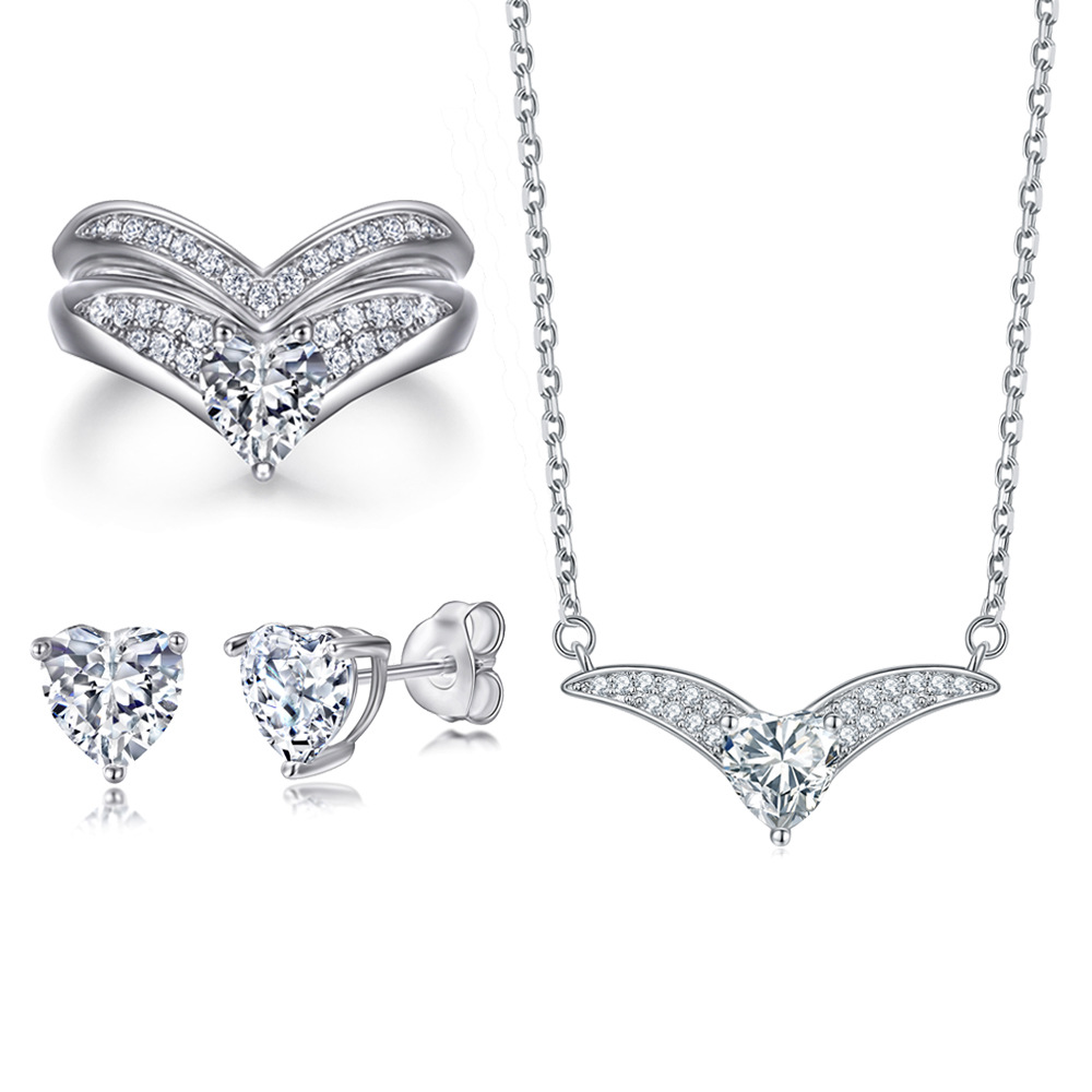 S925 Sterling Silver Love Ring Heart Shaped Earrings Necklace Female Niche Design Wholesale Silver Jewelry Set