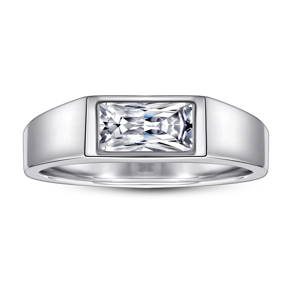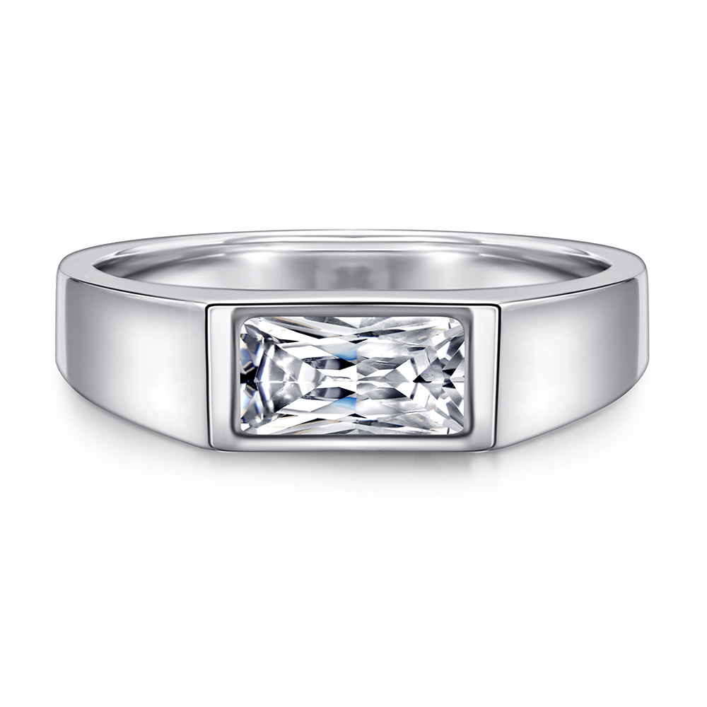 S925 Imitation Diamond Ring Zircon Ring Couple Men’s Simple Sterling Silver Ring
