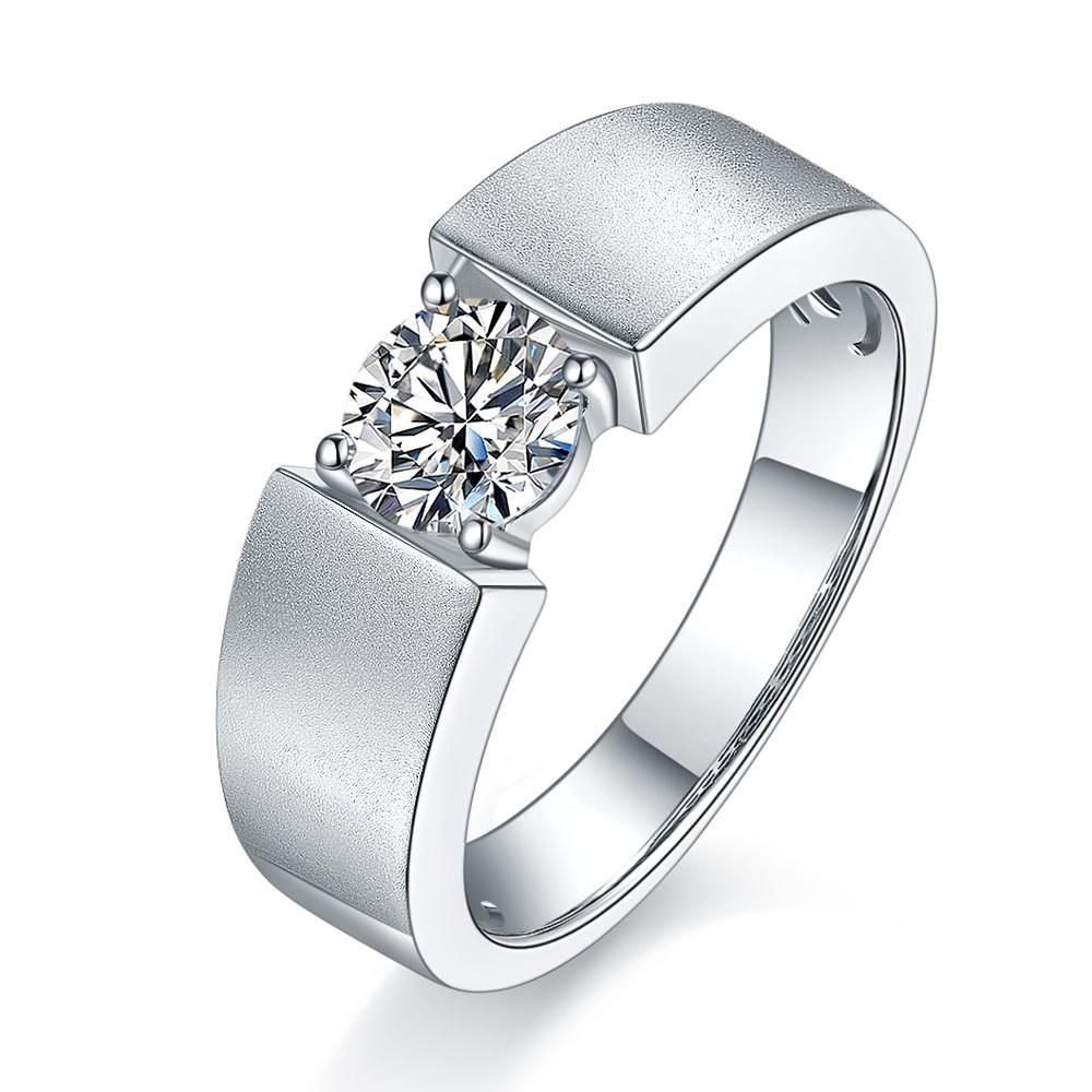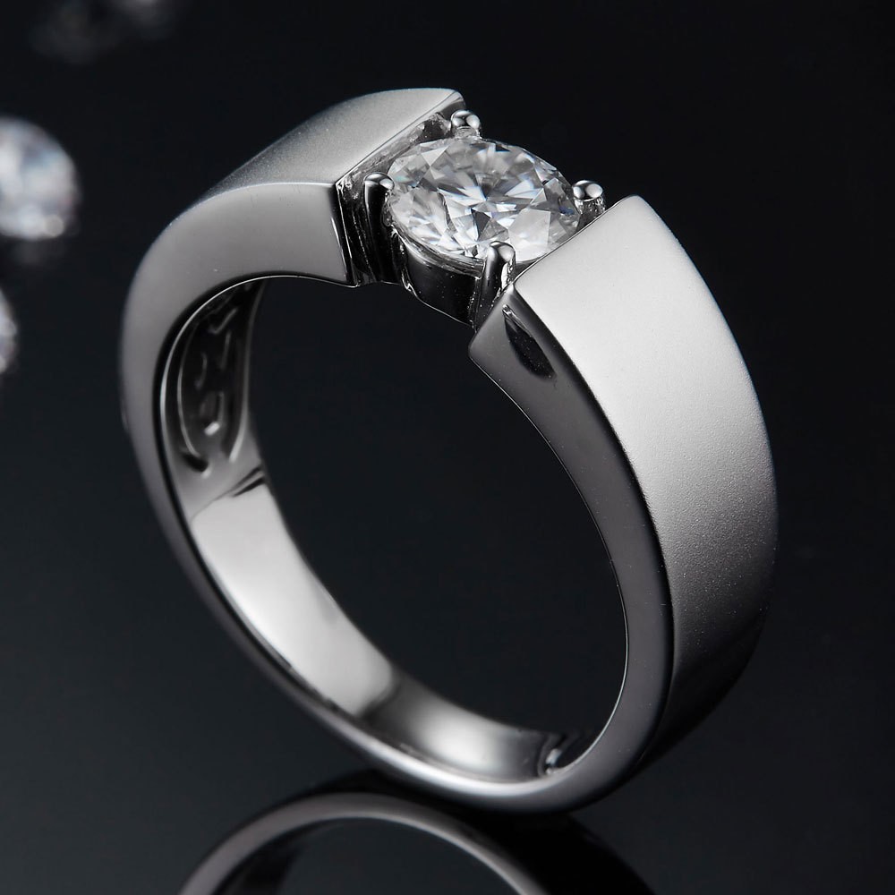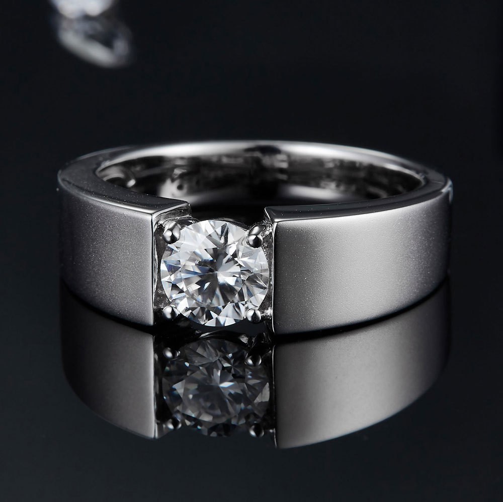 S925 One Carat D Color Moissanite Diamond Ring 925 Silver Men’s Ring Band
