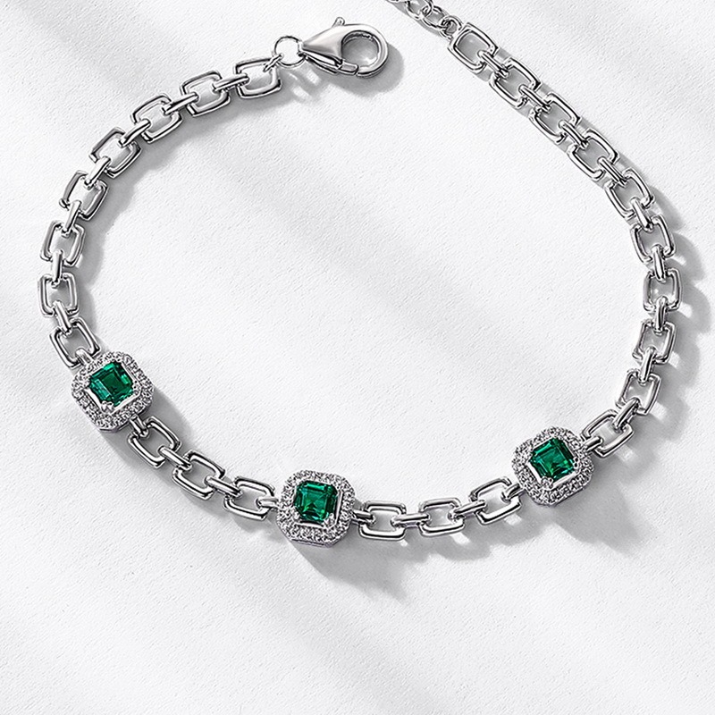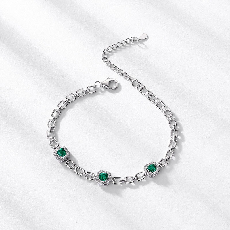 S925 pure silver bracelet set with natural emerald green gemstone quantity