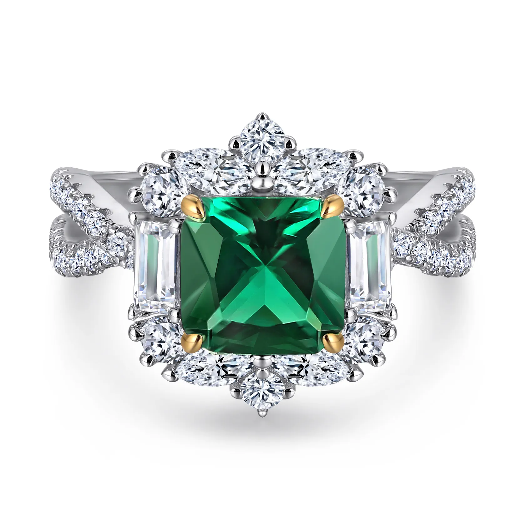 S925 Pure Silver Jewelry Set Ring Green Zircon Earrings Luxurious Emeralds Necklace