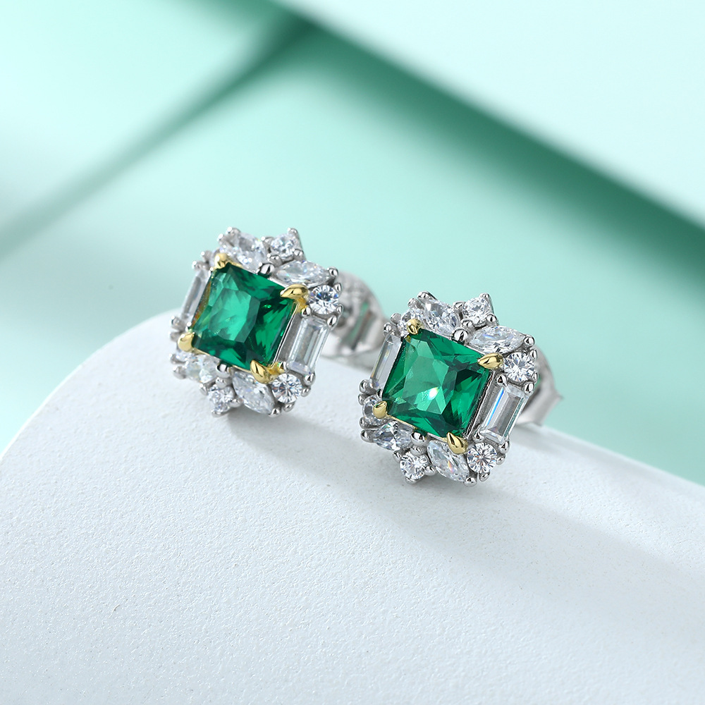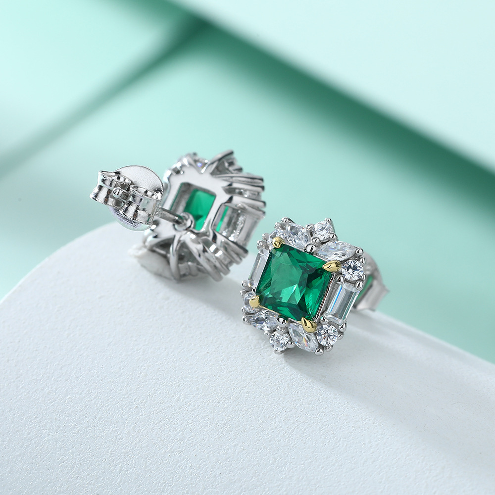 S925 sterling silver jewelry set European and American zircon square diamond ring necklace ins square stud earrings