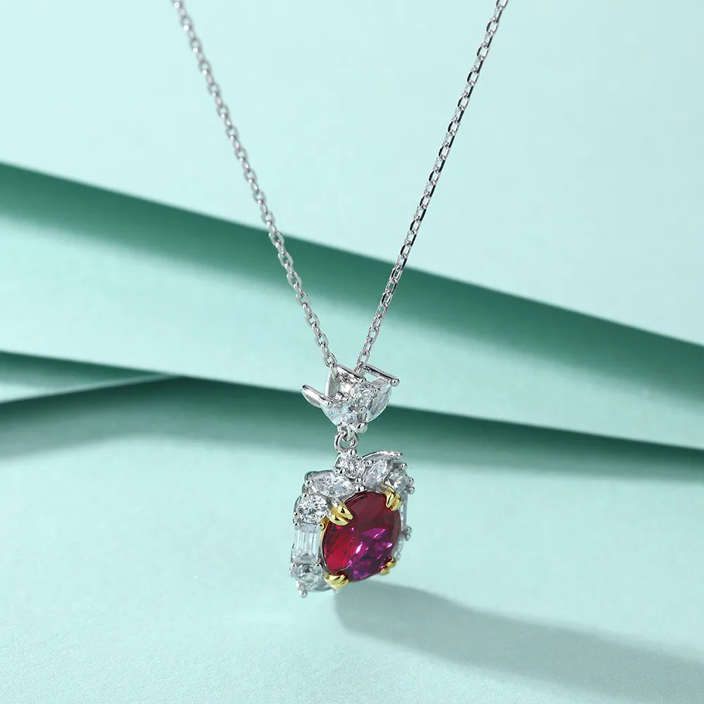 S925 sterling silver ruby ring silver earrings necklace colored zircon gemstone jewelry set