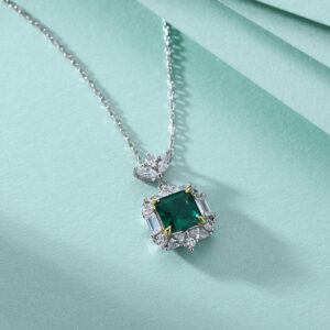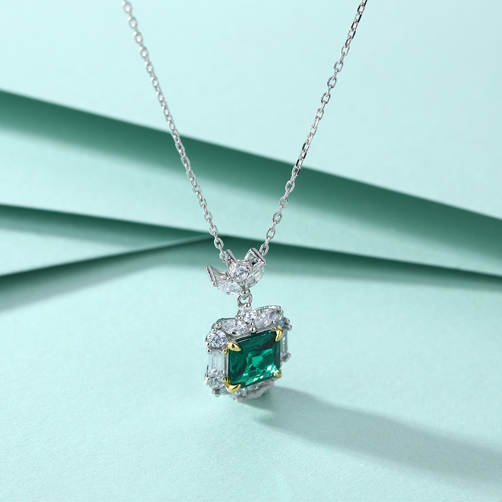 S925 silver color gemstone emerald pendant emerald zircon necklace women’s high-end cross-border hot sterling silver clavicle chain