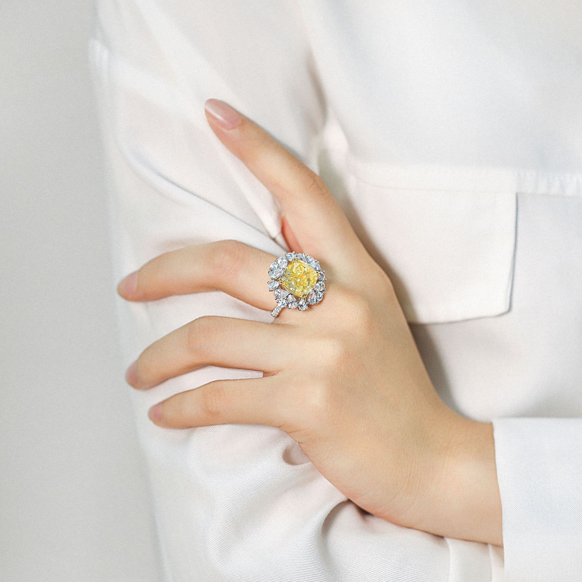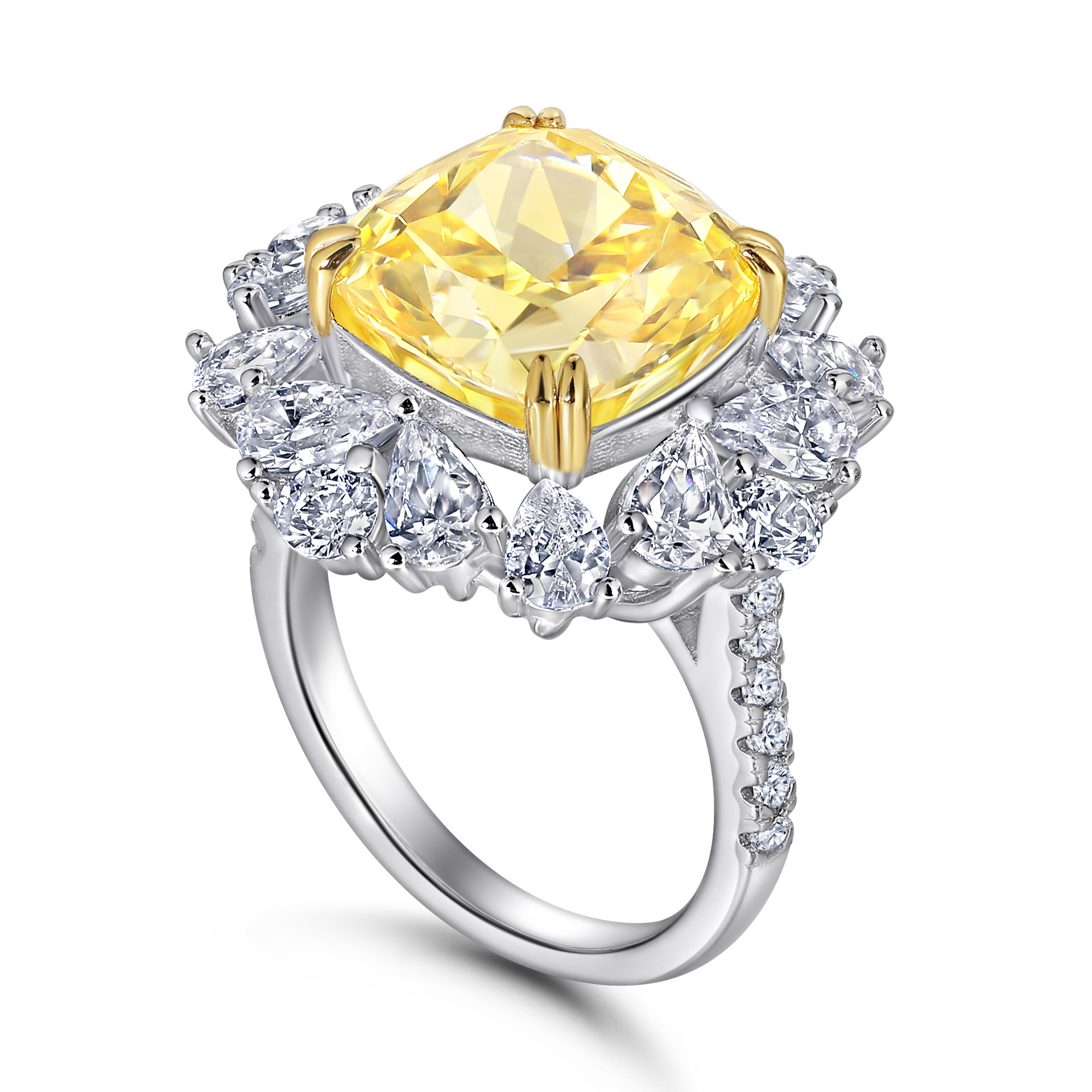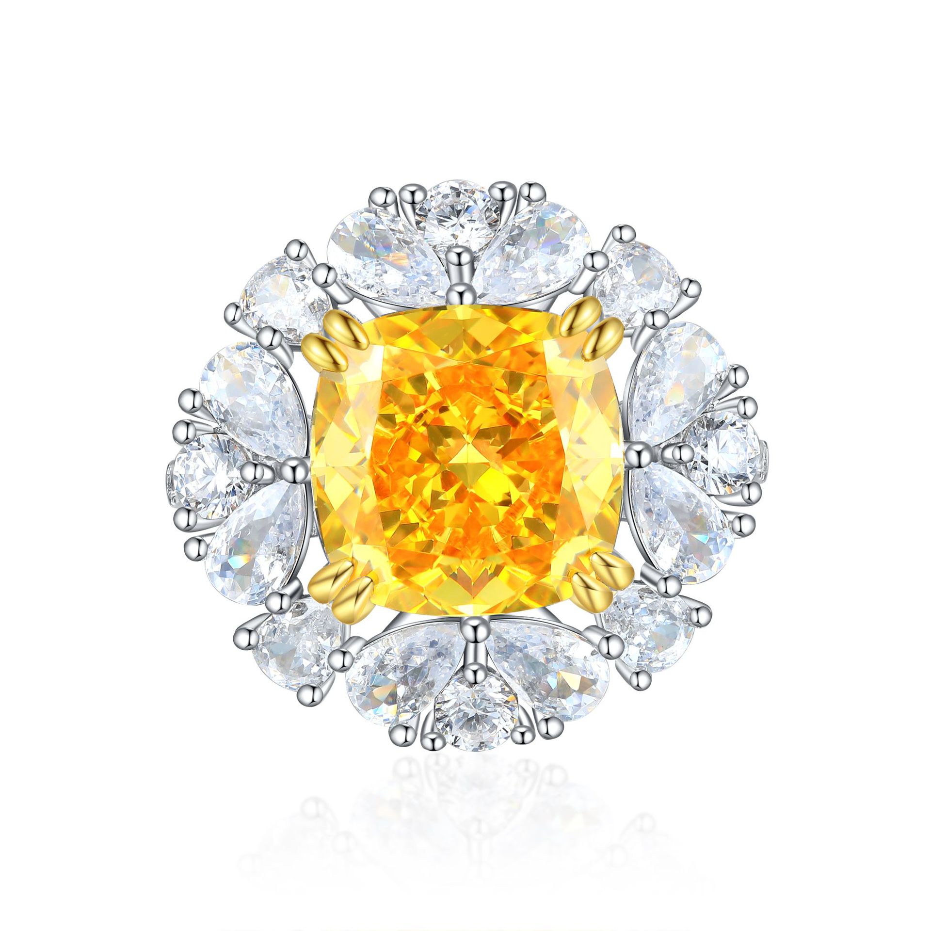 S925 silver European and American foreign trade retro index finger ring female yellow diamond zircon surrounded by light luxury ice flower 7ct high carbon diamond ring ring
