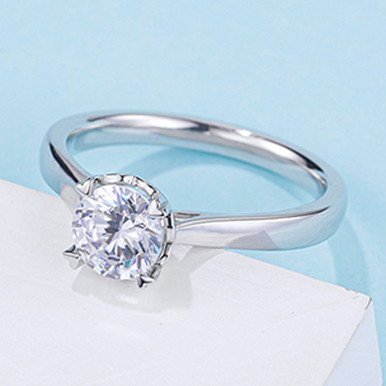 S925 Silver Four-Clawed Lotus Moissanite Diamond Ring Women’s Genuine One Carat D-grade Moissanite Diamond Ring Factory Direct Supply