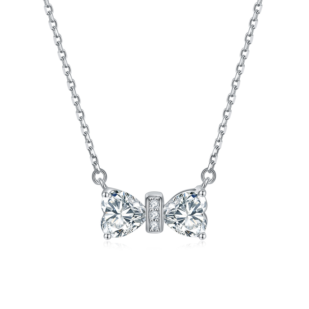 S925 Silver Jewelry Set Double Heart Zircon Ring Love Necklace Jewelry Stud Earrings