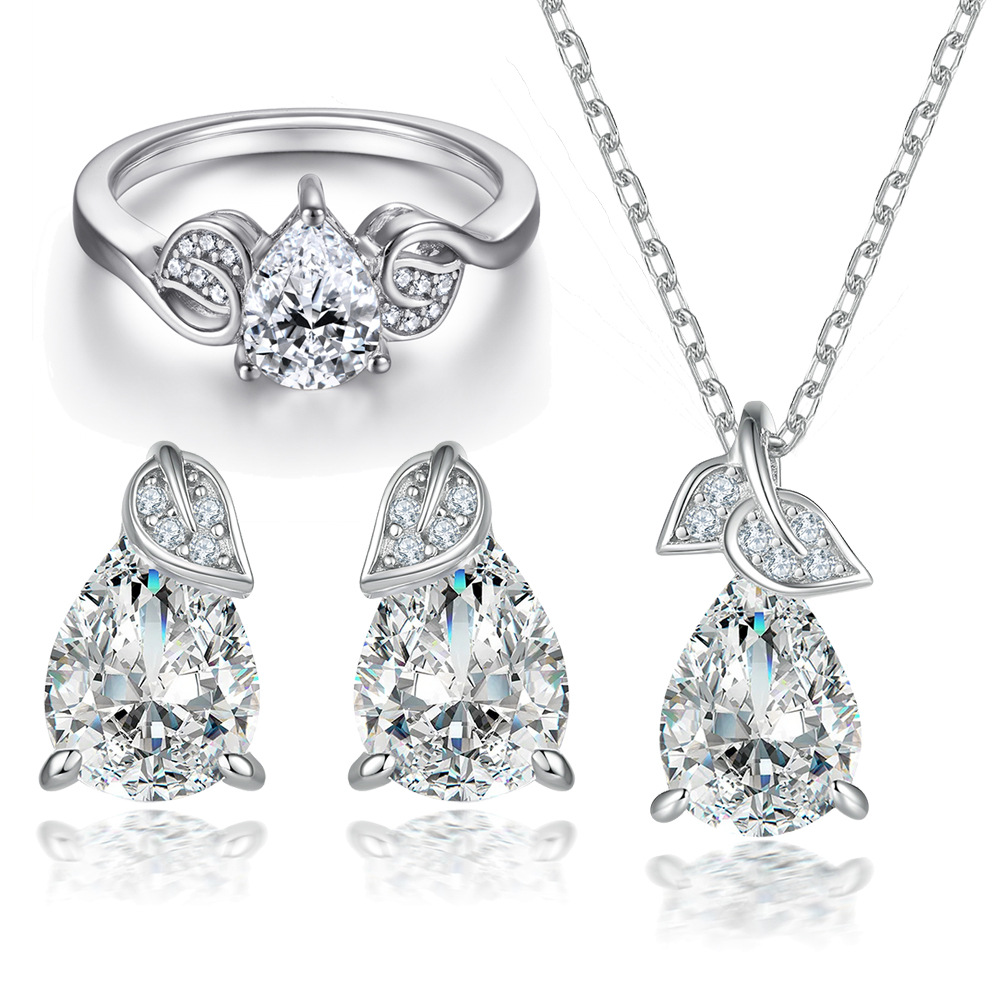 S925 silver jewelry set fashionable ring pear shaped earrings water droplet necklace