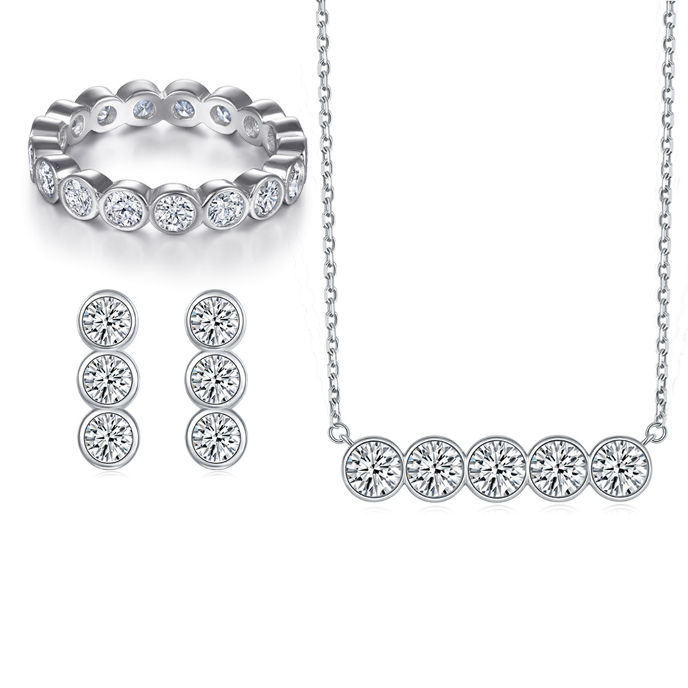 S925 sterling silver jewelry set three-piece rose gold ring simple necklace high-end earrings