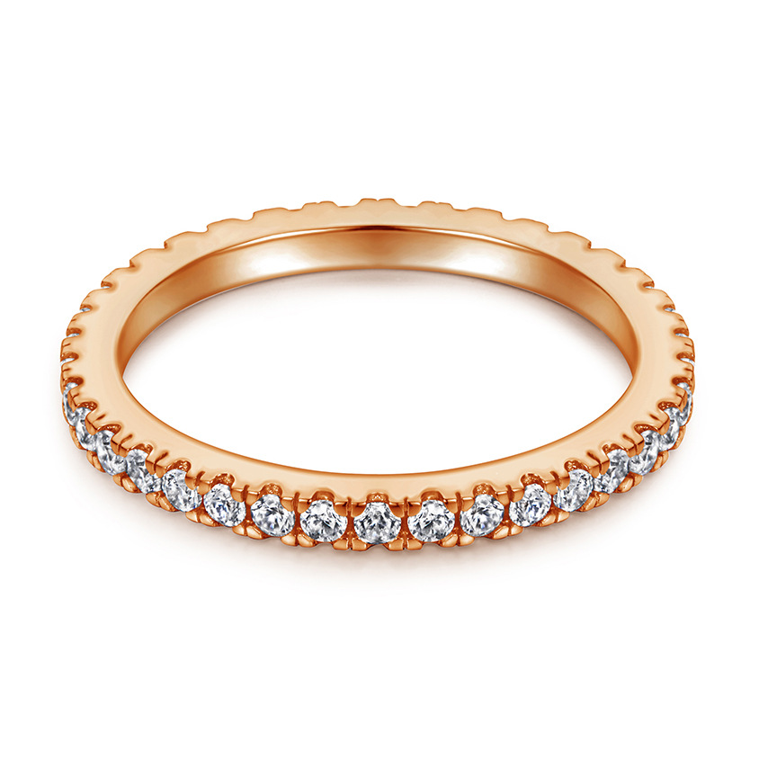 S925 Silver Ring 18K Rose Gold Micro Inlaid Zircon Row Ring