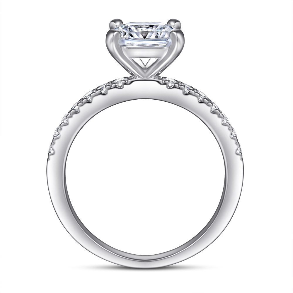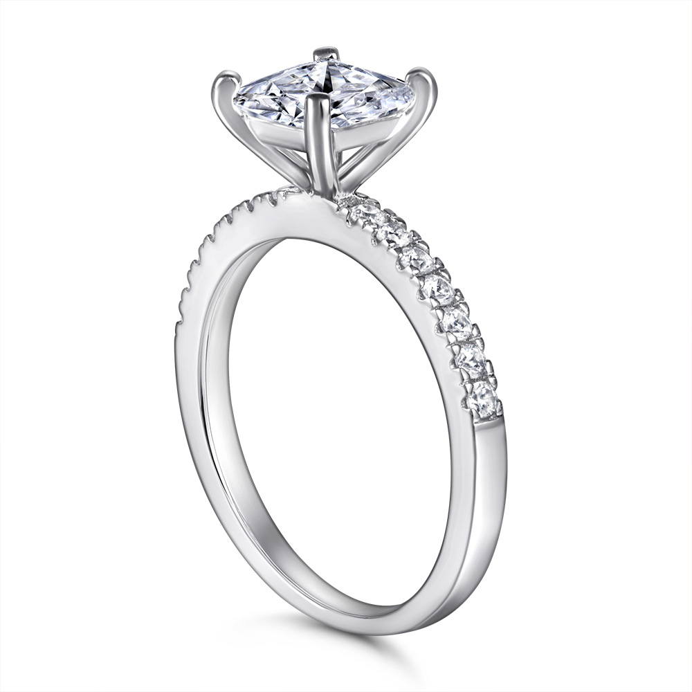 S925 Silver Ring Female Proposal 1 Carat Wedding Diamond Ring White Gold Square Imitation Diamond Ring Manufacturers Wholesale