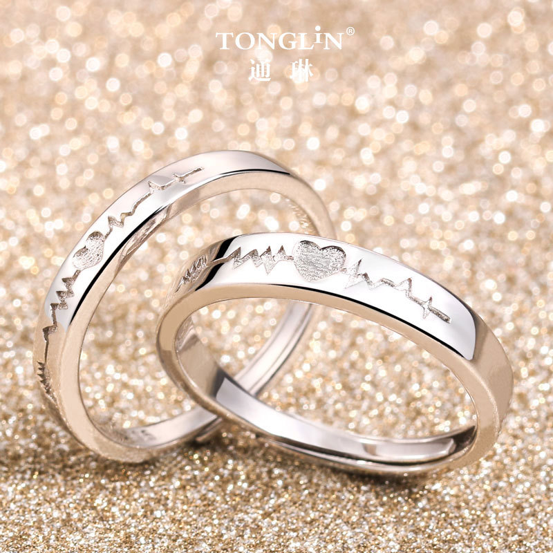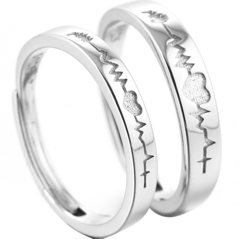 S925 Silver Ring Heartbeat Couple Rings Opening Adjustable